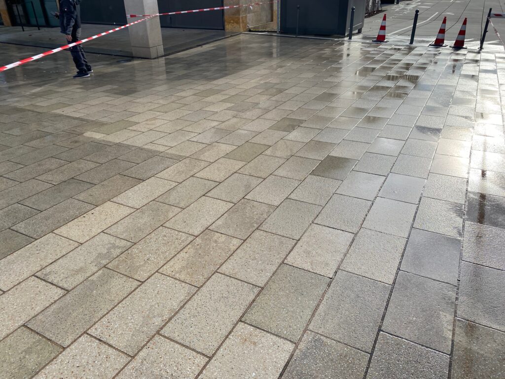 Erleben Sie nachhaltig gereinigte Fußgängerzonen durch unsere effektive Heißwasser-Hochdruckreinigung und Fugenbehandlung. Wir gestalten nicht nur ästhetisch ansprechende, sondern auch sichere Gehwege. Genießen Sie einen unbeschwerten Spaziergang ohne Stolpergefahren und mit minimierter Rutschgefahr – für ein sicheres und angenehmes Flanieren in Ihrer Stadt.