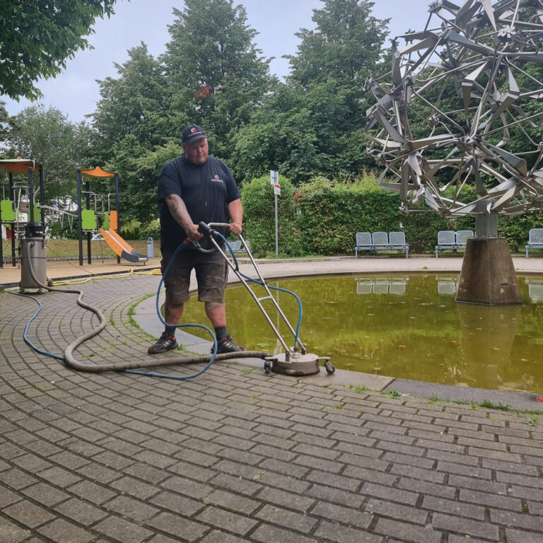 Im Laufe der Zeit neigt die Oberfläche von Brunnensystemen dazu, sich mit Schmutz, Moos und Algen zu bedecken, was zu einer trüben und unansehnlichen Erscheinung führen kann. Unsere Reinigung bietet eine effektive und gleichzeitig umweltfreundliche Alternative. Ganz ohne den Einsatz schädlicher Chemikalien sorgt sie nicht nur für saubere Oberflächen, sondern trägt auch aktiv zur Schonung unserer Umwelt bei.